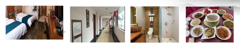 一人一床,配有独立卫生间和洗浴。 四荤五素一汤桌餐,外加水果。